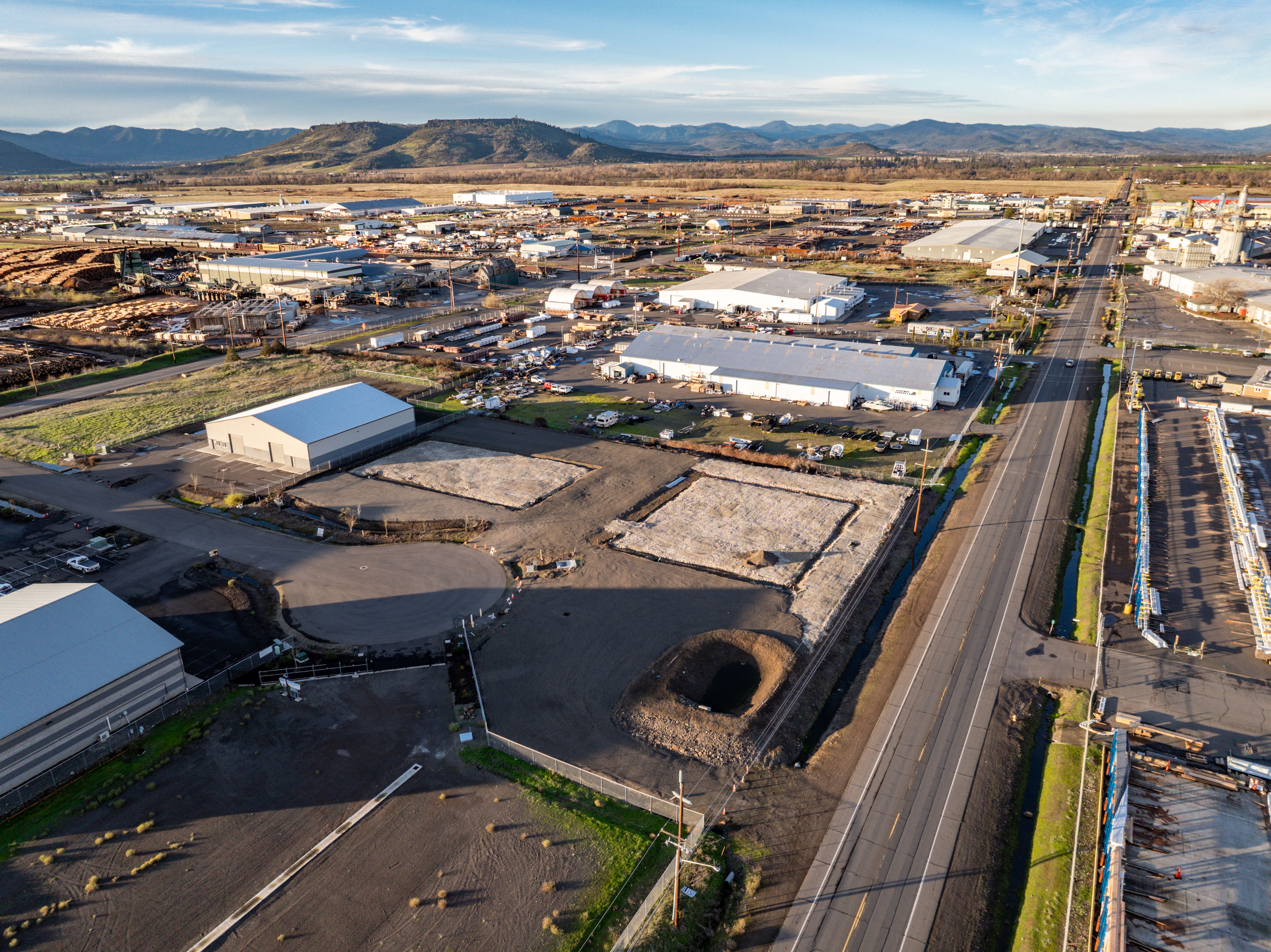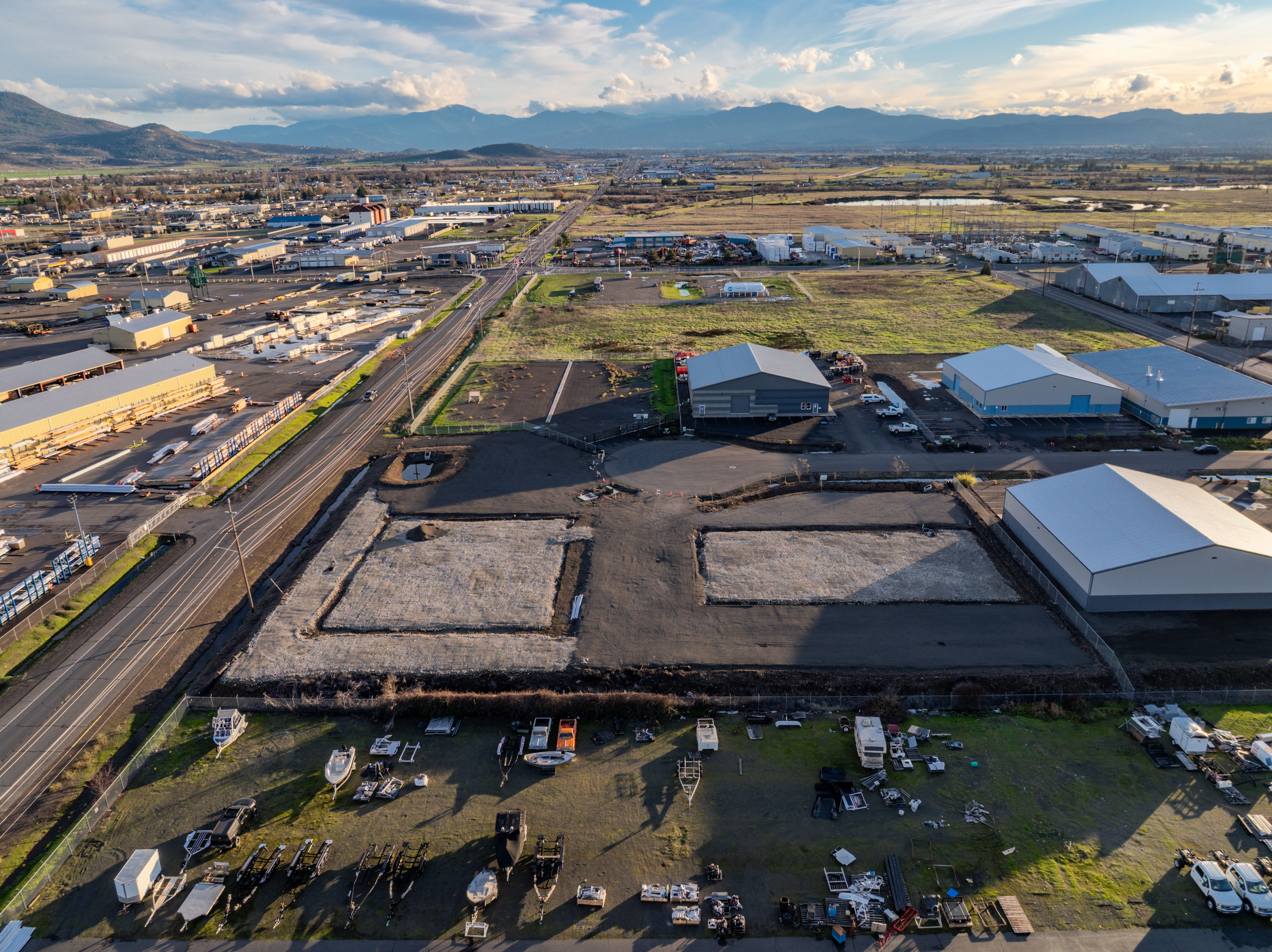 Additionally, the site plans suggest that both parcels will have fully paved asphalt parking, chain-link fencing and loading areas for industrial use. Conveniently located in White City, the Sites also offers excellent access to major roadways throughout the Rogue Valley, including a ±9-minute/7.5-mile drive to Interstate-5 and a short ±3-minute drive to Highway 62. This location provides strong connectivity and some visibility for any operations on the property.