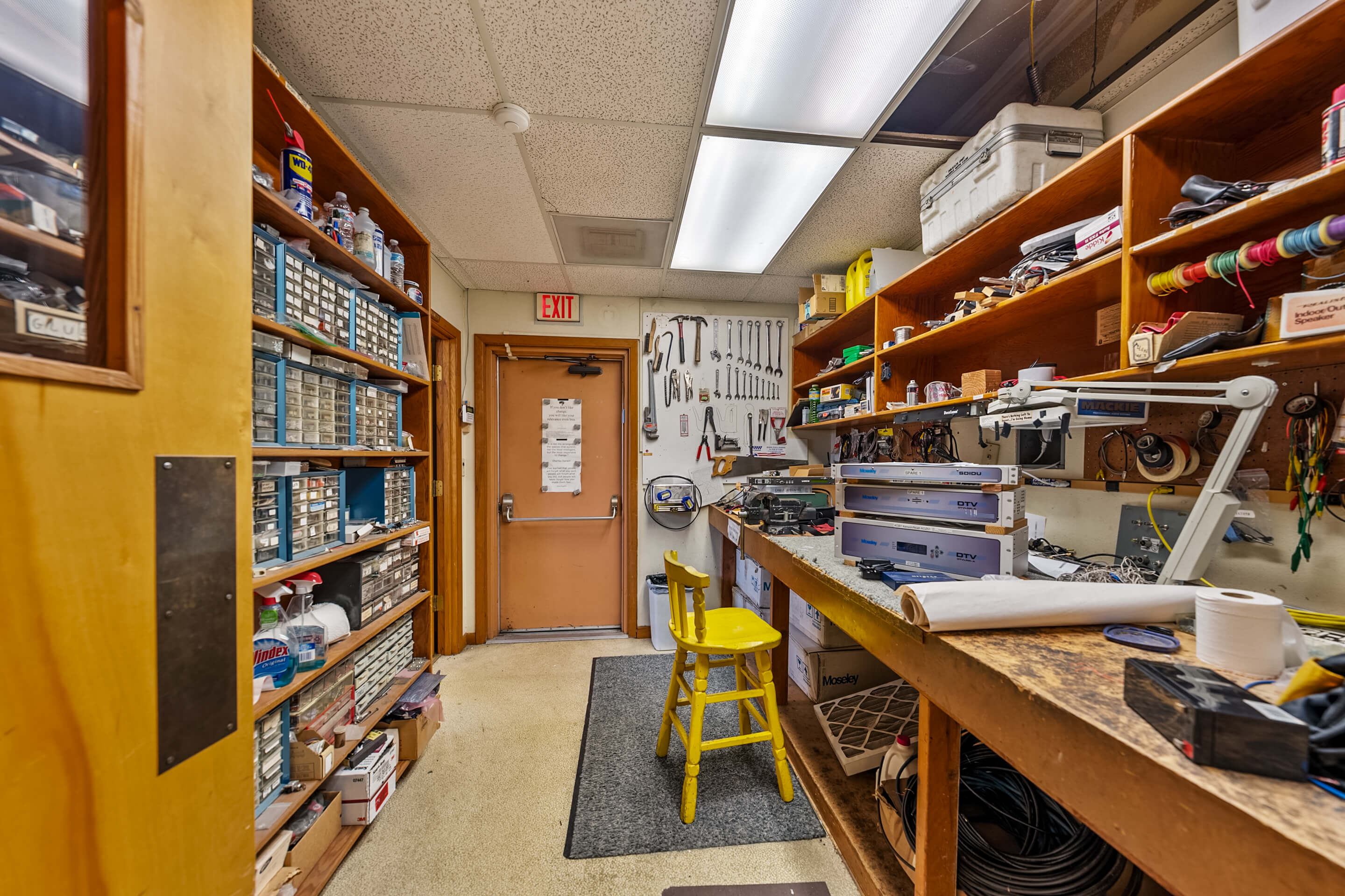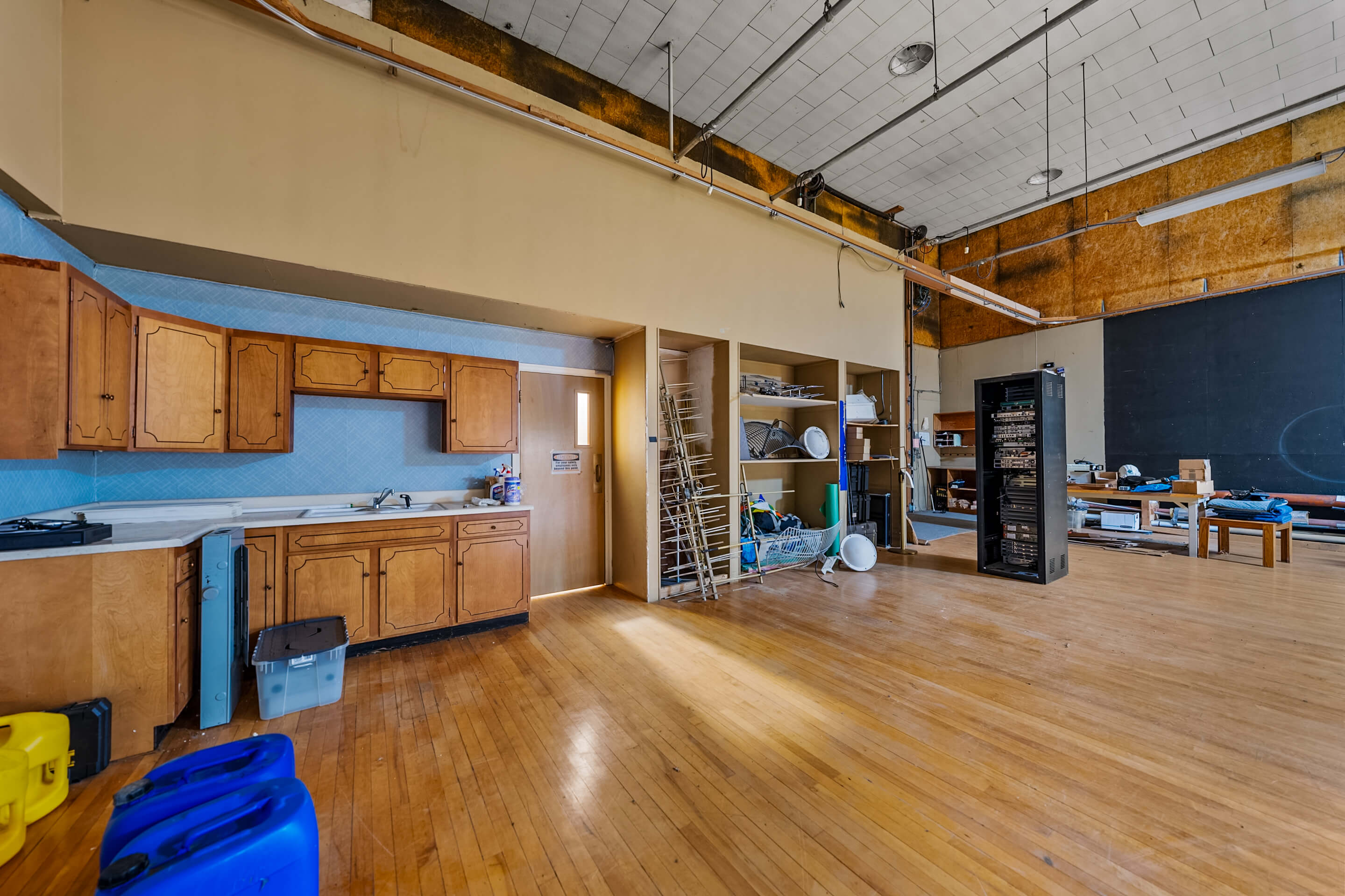 Originally starting life as an offsite gymnasium for the nearby Roseburg High School, the building was expanded and improved into a highly-active television and broadcast studio. Improvements included a substantially built-out production studio, sound-isolated control room, and extensive office and sales areas supporting the broadcast.