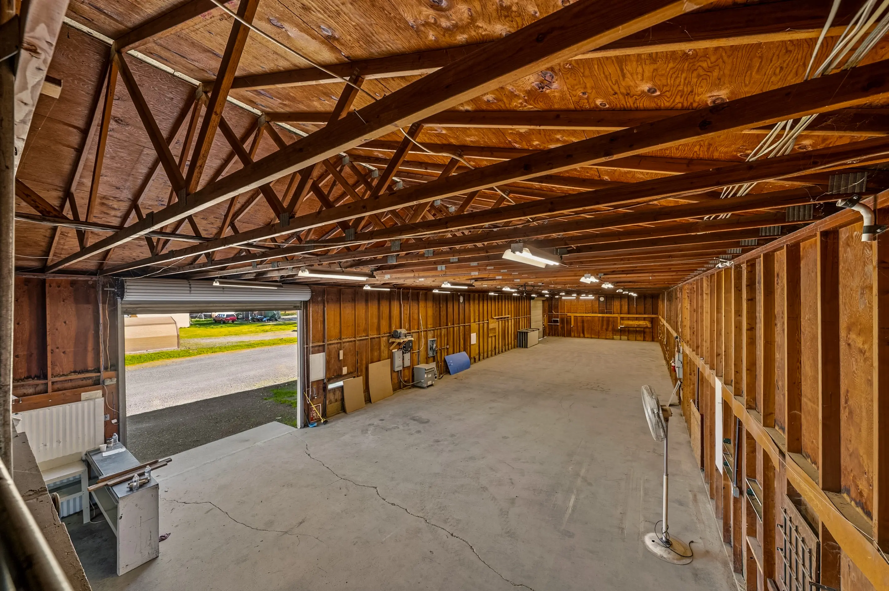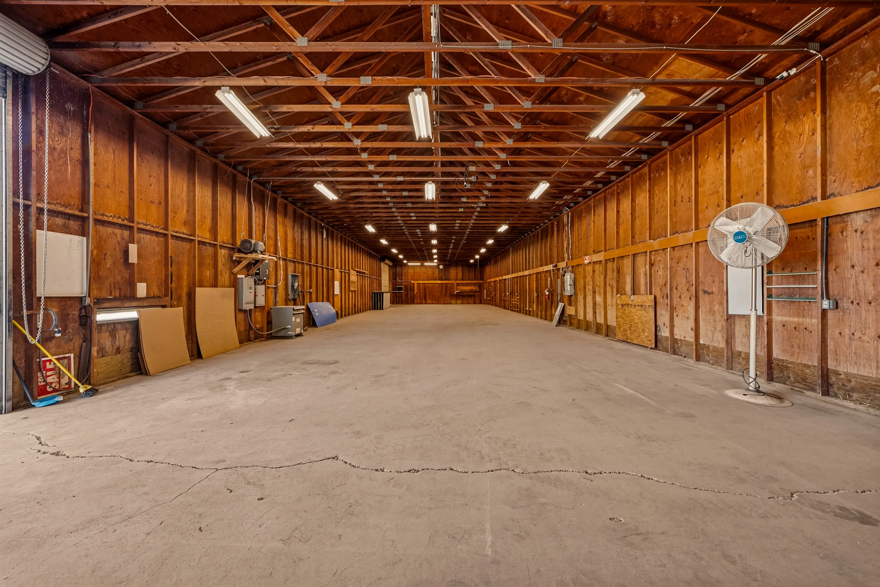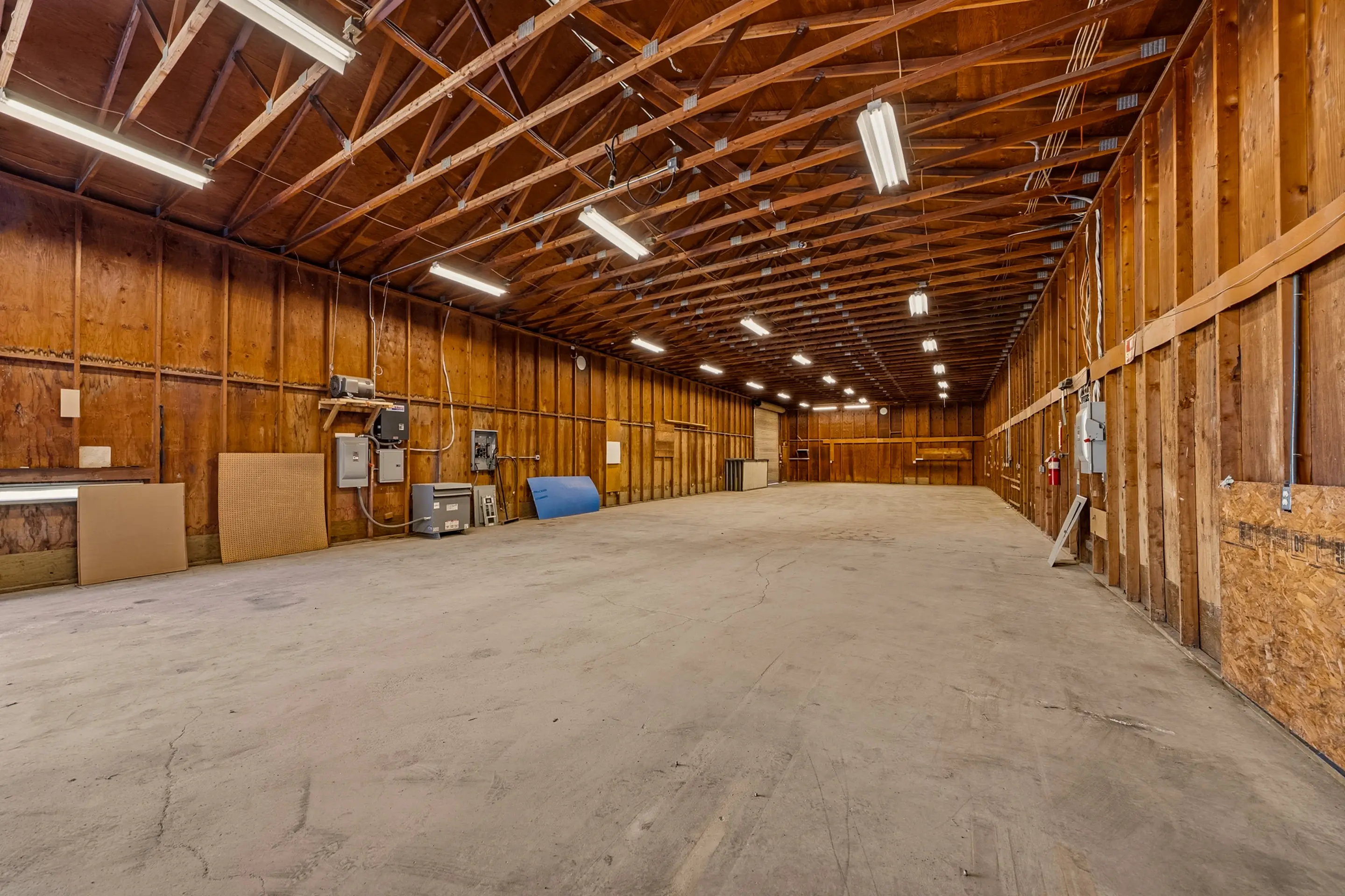 There are multiple easy-to-use access points, including 2 large 12’x12.6’ grade-level roll-up overhead doors and 2 man doors. The property enjoys direct frontage and visibility from Ort Lane, and has a private driveway provided left/right turn access onto the paved Ort Lane. Outside, there is roughly half an acre of graveled outdoor storage, parking, and loading space, as well as the large steel-frame shed, providing covered and secure material or vehicle storage.