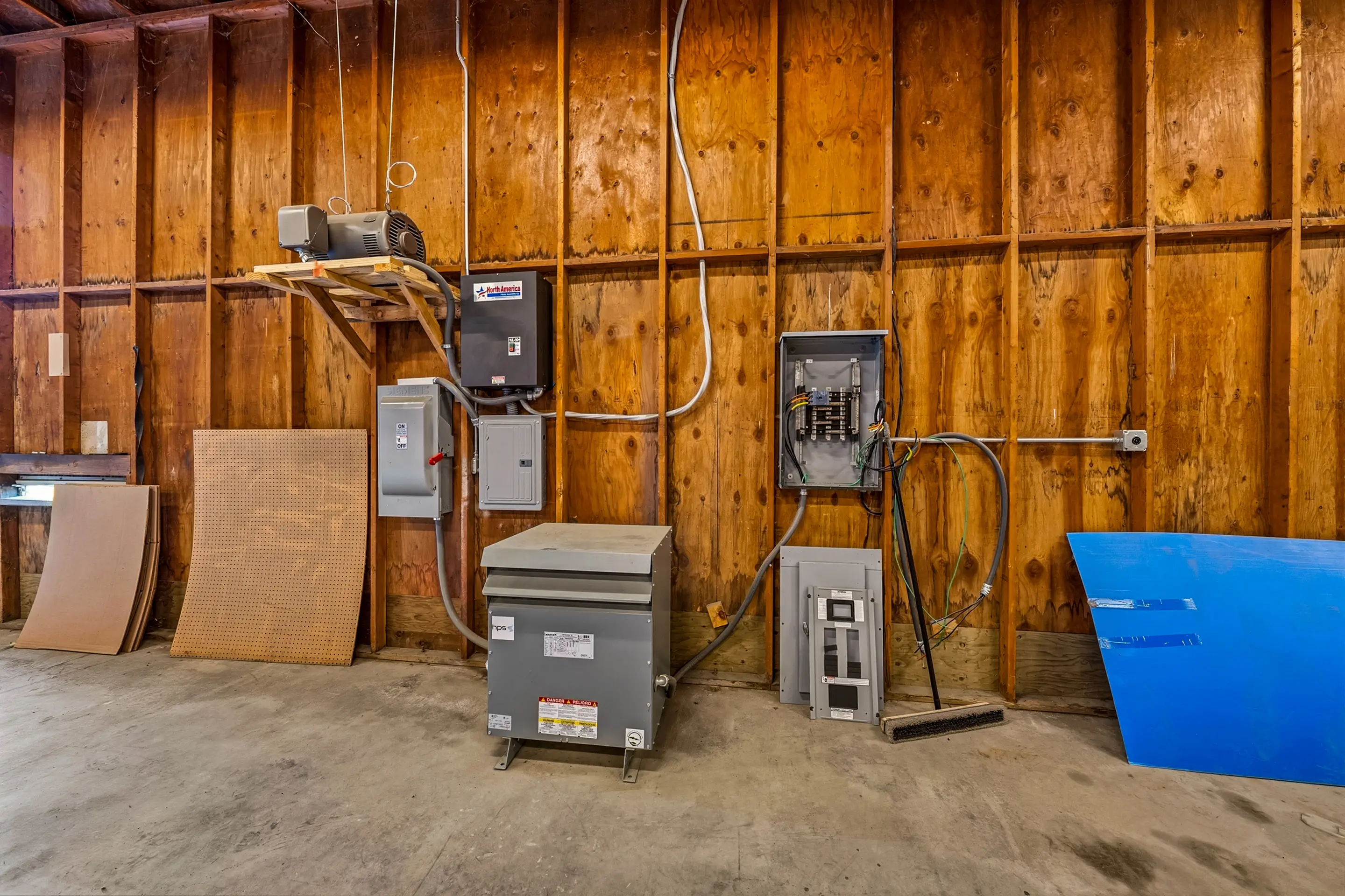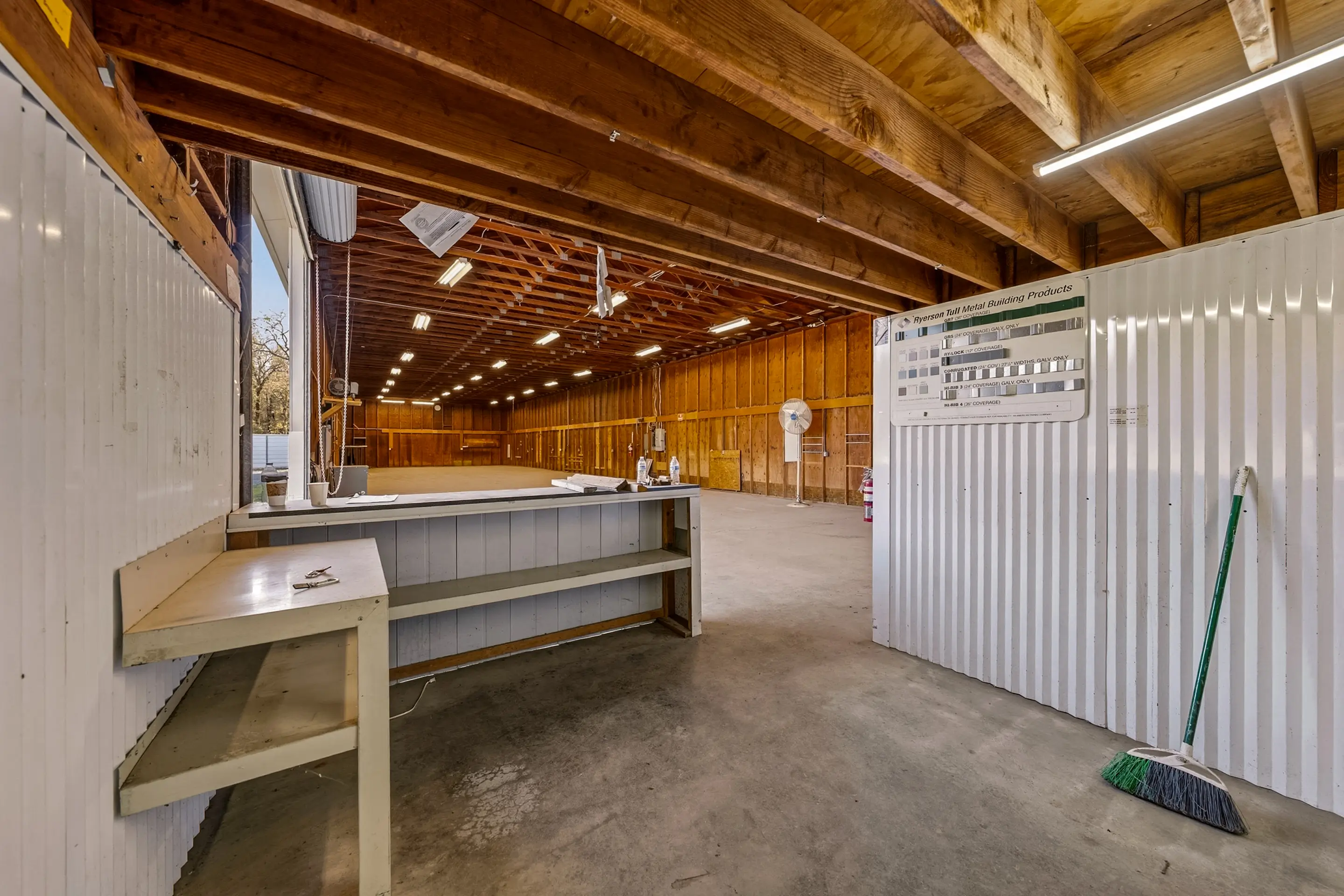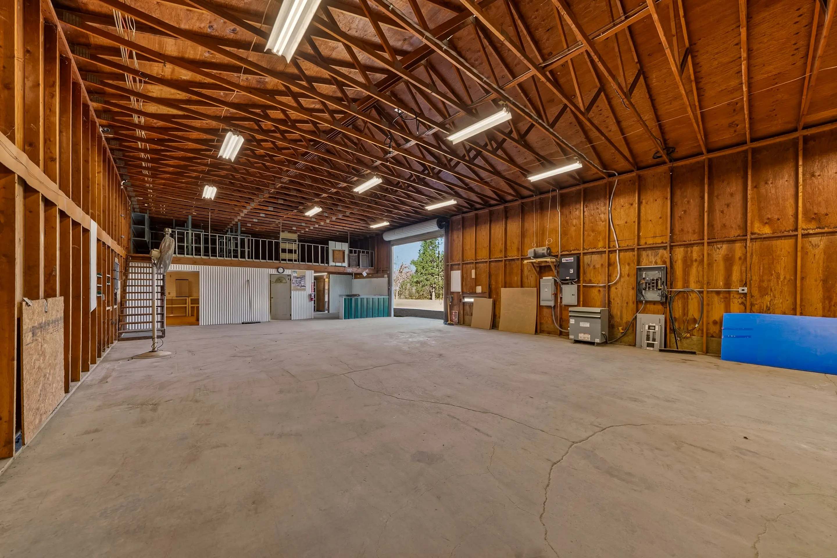 There are multiple easy-to-use access points, including 2 large 12’x12.6’ grade-level roll-up overhead doors and 2 man doors. The property enjoys direct frontage and visibility from Ort Lane, and has a private driveway provided left/right turn access onto the paved Ort Lane. Outside, there is roughly half an acre of graveled outdoor storage, parking, and loading space, as well as the large steel-frame shed, providing covered and secure material or vehicle storage.